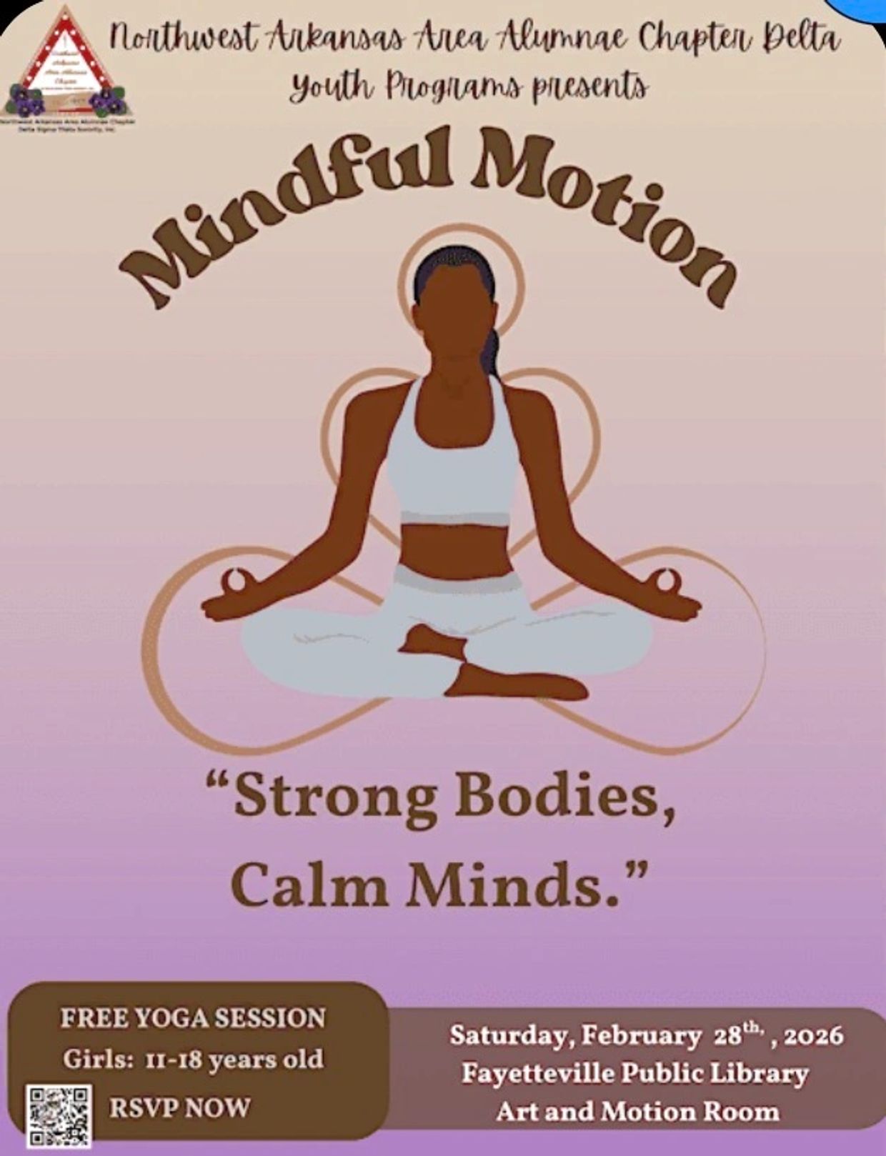 Stretch out, breathe in, and let the stress go 💕 Come out to move, relax and reset with the women of the NWA Area Alumnae Chapter of Delta Sigma Theta Sorority, Inc. as we explore yoga and stress management techniques. We welcome young ladies from the age of 11 to 18 years to meet us at the Fayetteville Public Library, Saturday February 28th at 10:30am!