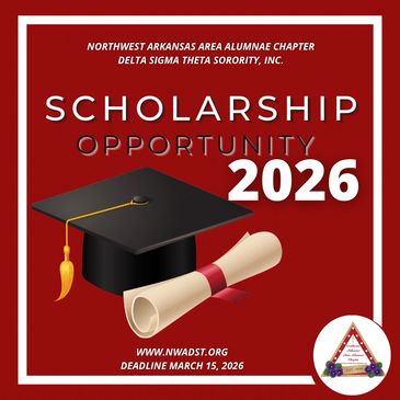 The Northwest Arkansas Area Alumnae Chapter of Delta Sigma Theta Sorority, Inc. is pleased to offer a the following scholarship opportunities for the Fall 2026 school year. This opportunity is available to